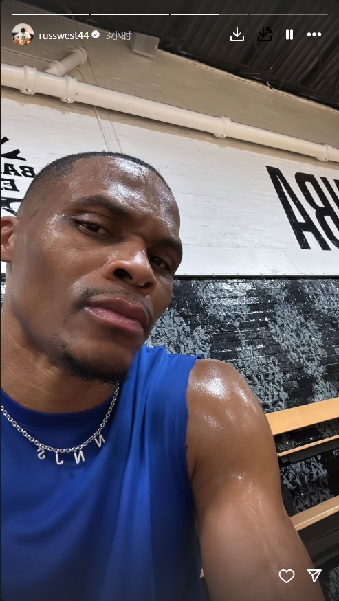 积极备战!威少社交媒体晒出训练后大汗照 表情桀骜!